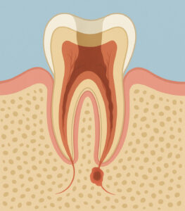 感染部分を完全に取りきれなかった場合、またこのように根の先が膿んでしまう….