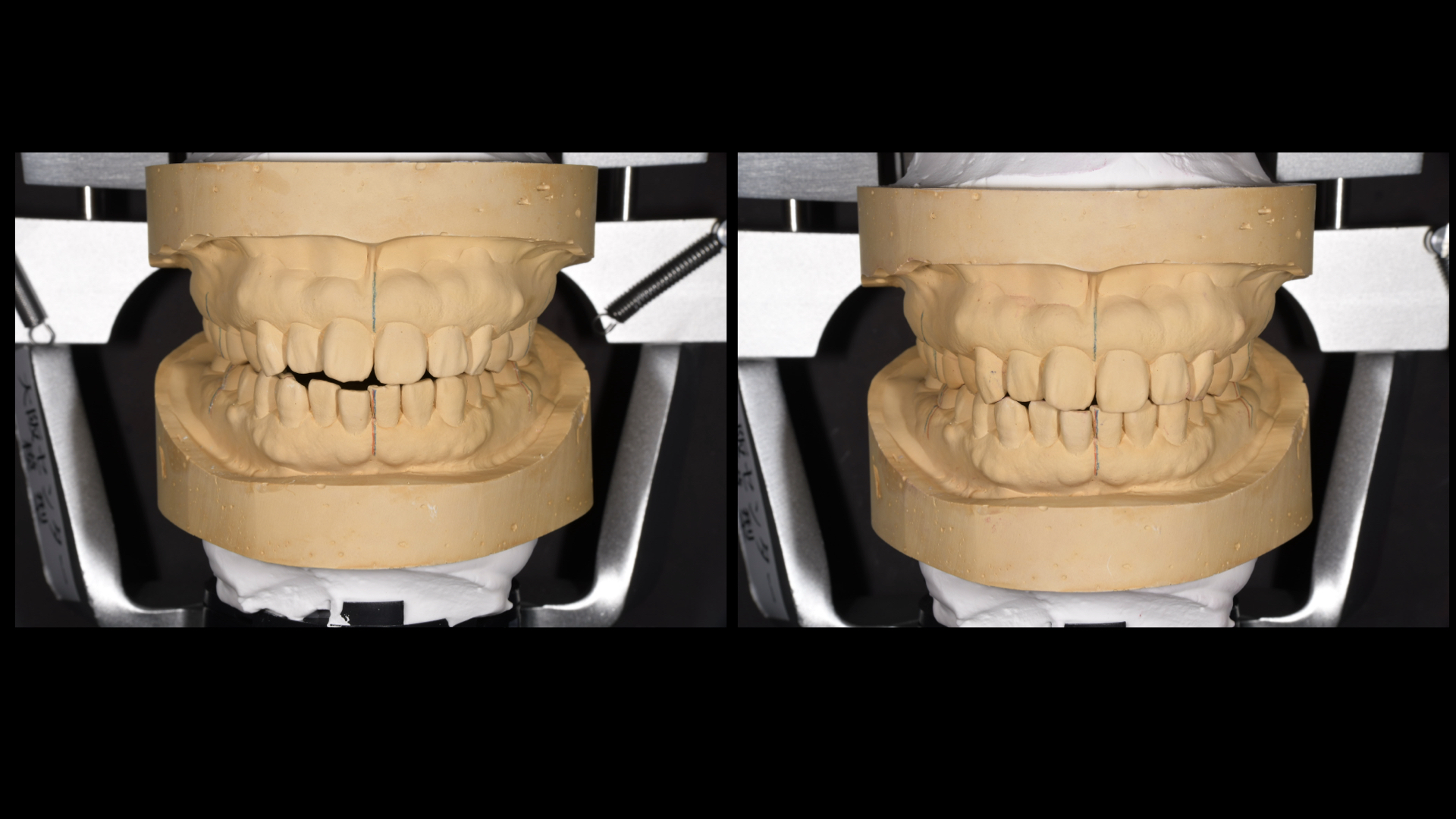 そこで矯正をせずに前歯を噛ませるにはどうしたらよいか。模型上でシミュレーションをしました。