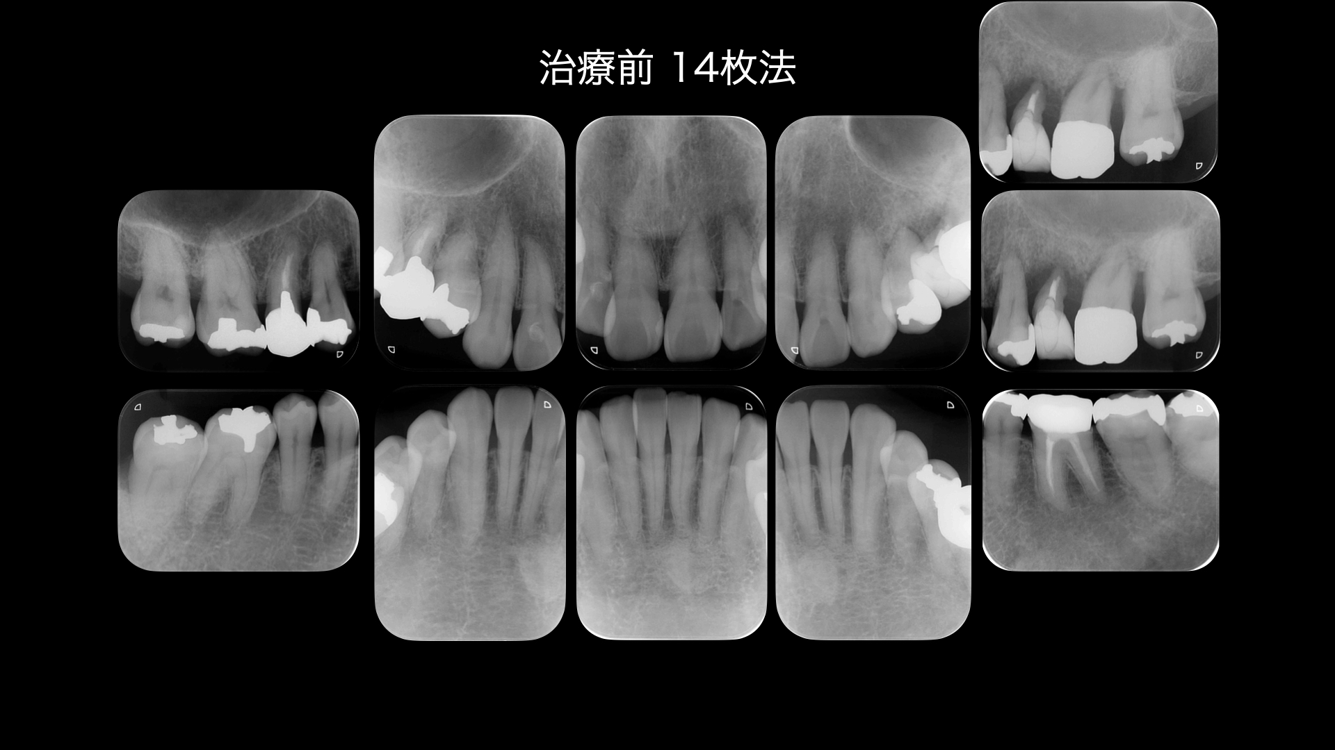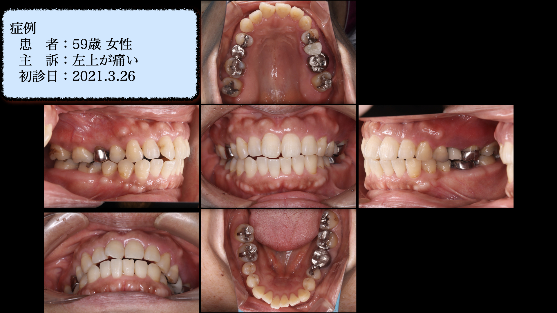 左上の歯が痛い。ということが主訴で紹介で来られました。左下や真ん中の写真をみてください。