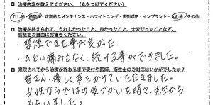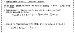 ◆治療内容歯周病◆治療後の感想予約なのでずっとこられた◆受付や医師・衛生士の対応は?とても良かったみなさん親切です