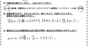 福岡市東区香椎浜在住 むし歯治療他でご来院