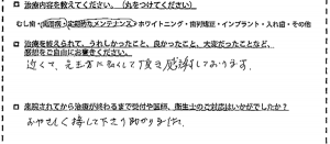 ◆治療内容歯周病治療 定期的なメンテナンス ◆治療後の感想近くて、先生方に良くして頂き感謝しております。 ◆受付や医師・衛生士の対応は?おやさしく接して下さり助かりました。